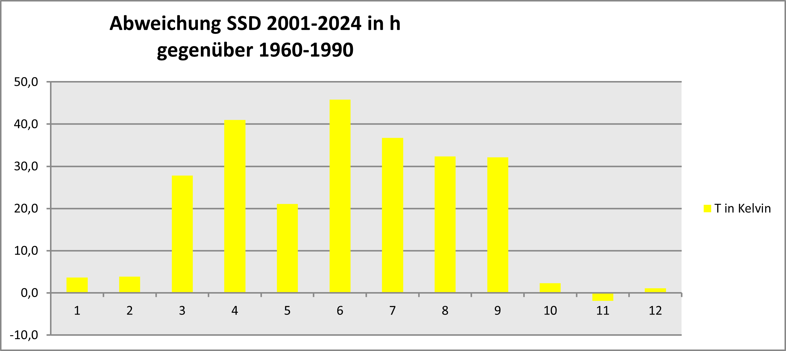 K höher als in den Jhren 1960-90. Der Wärmeüberschuss betrifft alle Monate des Jahres. Die stärksten Veränderungen zeigen der August (+1,5