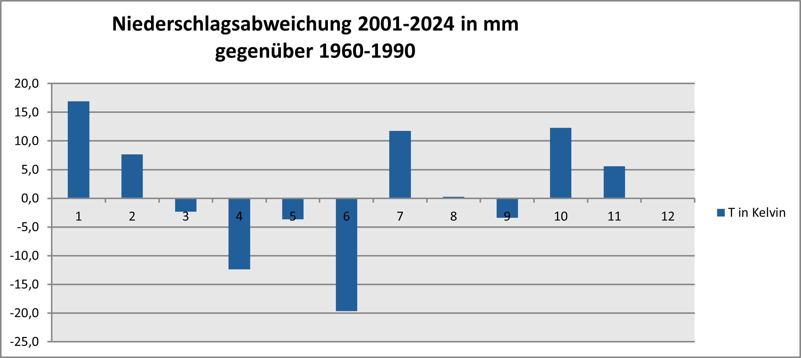 mm feuchter geworden. Tendenziell ist der Zeitraum von Februar bis Juni trockener, der Folgezeitraum von Juli bis Februar feuchter geworden. Spitzenreiter ist der Januar (+17